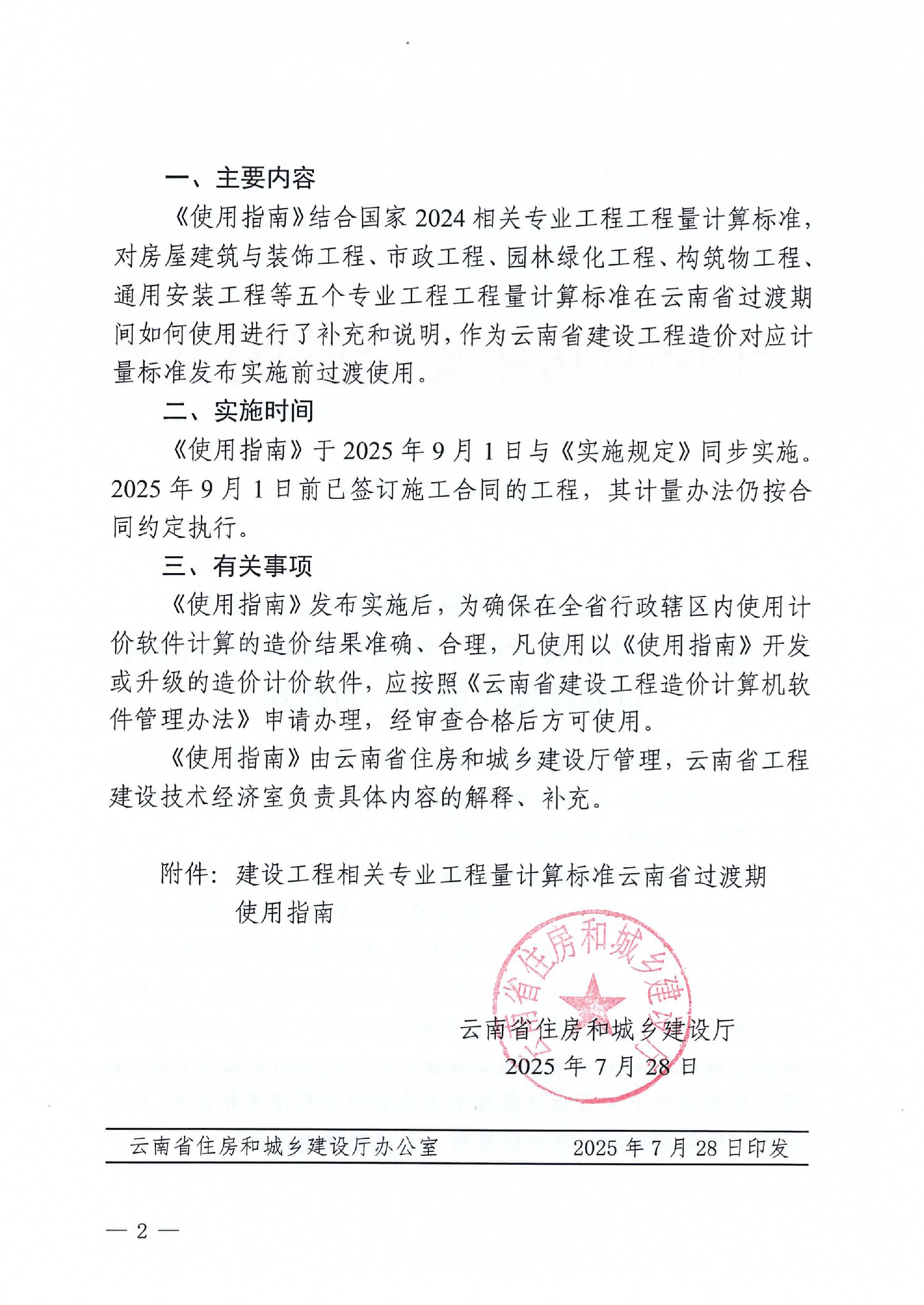 云南省住房和城乡建设厅关于发布《建设工程相关专业工程量计算标准云南省过渡期使用指南》的通知